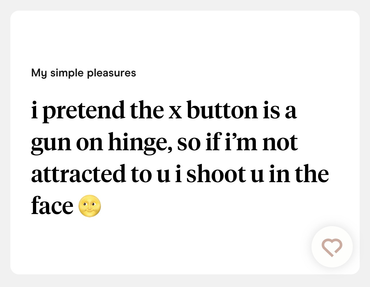 sooo anyway, i laugh, it comes out choked- godddd this is so embarrassing, i’m trying (again) to get back on track. talk about me less more about the absurdity of the internet. don’t you just hate it when you’re swiping on hinge and someone answers a prompt with “i wish i didn’t have to write these!” ha! ha!