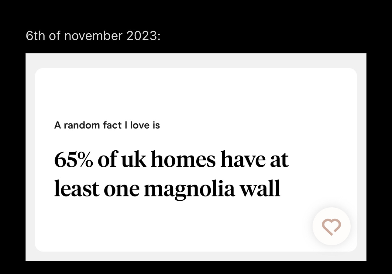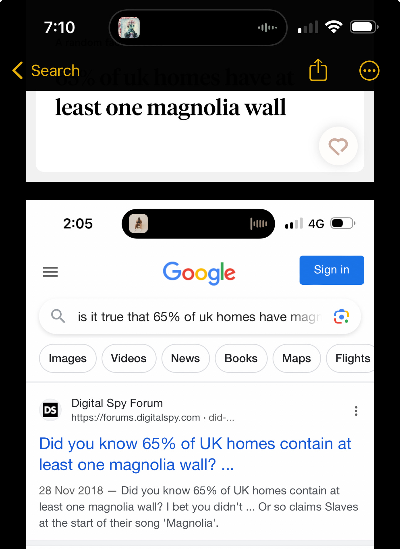 there’s a screenshot underneath this with me googling “is it true 65% of uk homes have a magnolia wall” and i’ve clearly just screenshotted the first thing i saw cuz i took this as fact until today 😭 realised this is a song lyric.